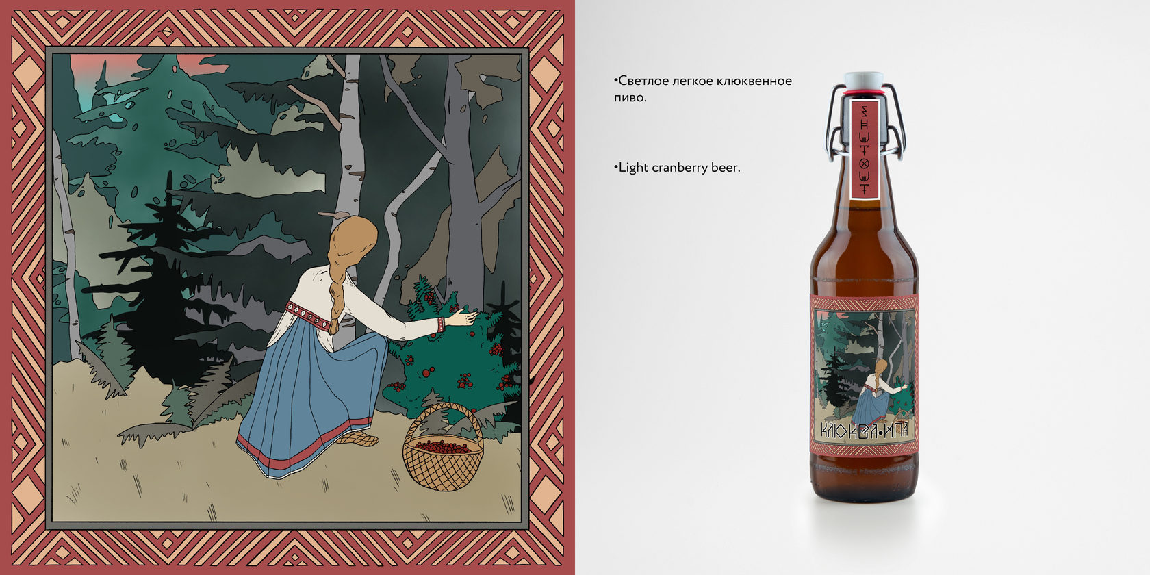 The illustrations for the Siberian craft brewery "Shutout" were created in the process of studying the folklore of Siberia, and their visuals were influenced by the great Russian artist Ivan Yakovlevich Bilibin.